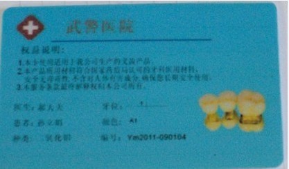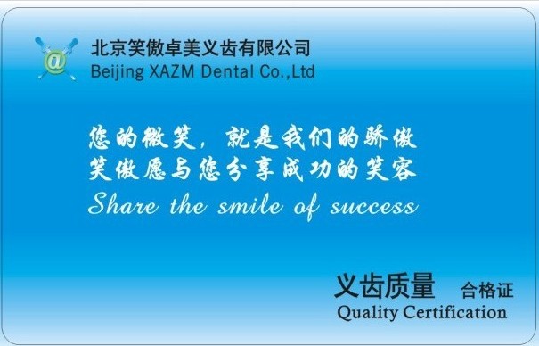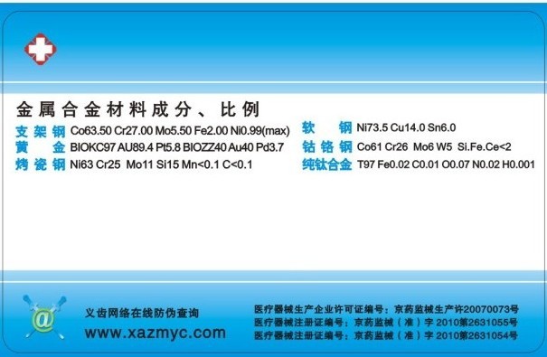 最近在天津市场发现一些企业和个人仿冒我公司的相关产品,不仅欺骗消费者,也严重侵犯了我公司的合法权誉。特此做出严正声明:对侵犯了我公司的合法权誉的相关人员或机构,应立即停止制造、销售,仿冒我公司义齿行为!否则追究其法律责任。我公司所有产品都可以施行网络查询真伪的功能,在我公司网站输入编号和患者姓名即可查询! 对于有关客户因购买仿冒产品而导致之损失,请用法律的武器捍卫自己的权利,本公司不负任何责任,同时提醒消费者,如购买到假冒伪劣产品时,请及时向当地工商机构举报,电话12315国家食品药品监督管理局http://www.sda.gov.cn,当地食品药品监督管理局及时举报!